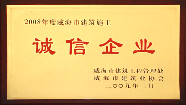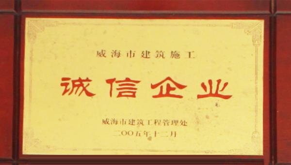 公司連續(xù)八年榮獲威海市“誠信開發(fā)企業(yè)”、“建筑施工誠信企業(yè)”,連續(xù)九年被評為威海市級“守合同重信用企業(yè)”,多次被評為威海市“市級文明單位”、“質(zhì)量管理先進企業(yè)”、 “安全管理先進企業(yè)”,乳山市“優(yōu)秀企業(yè)”、“先進民營企業(yè)”、“納稅明星企業(yè)”,在社會上逐步樹立了誠信、穩(wěn)健的企業(yè)形象。